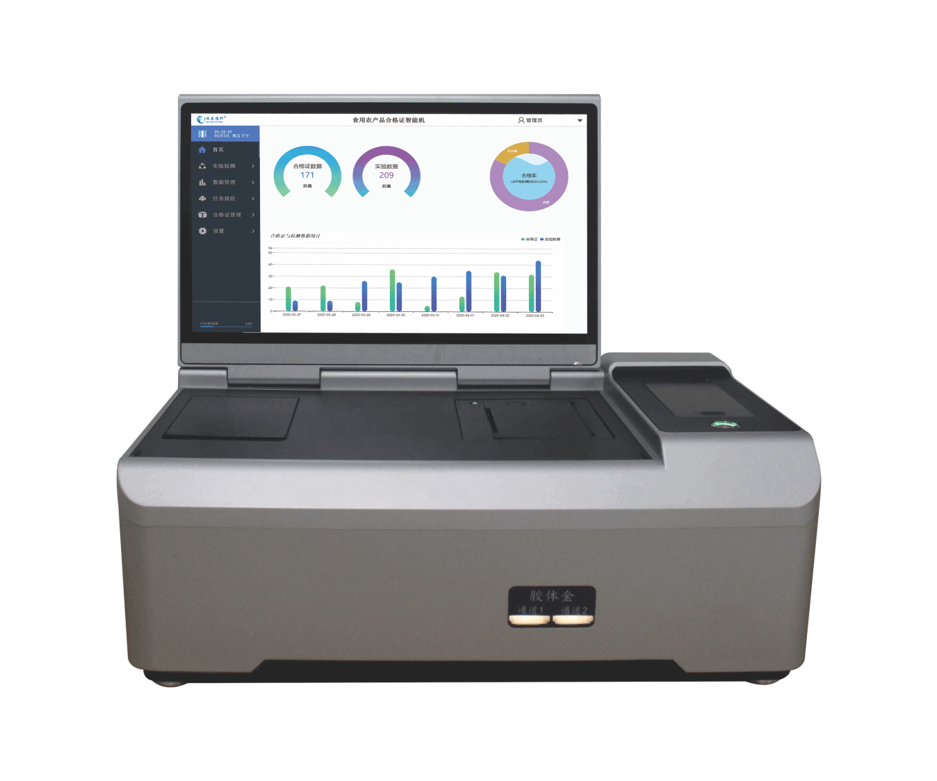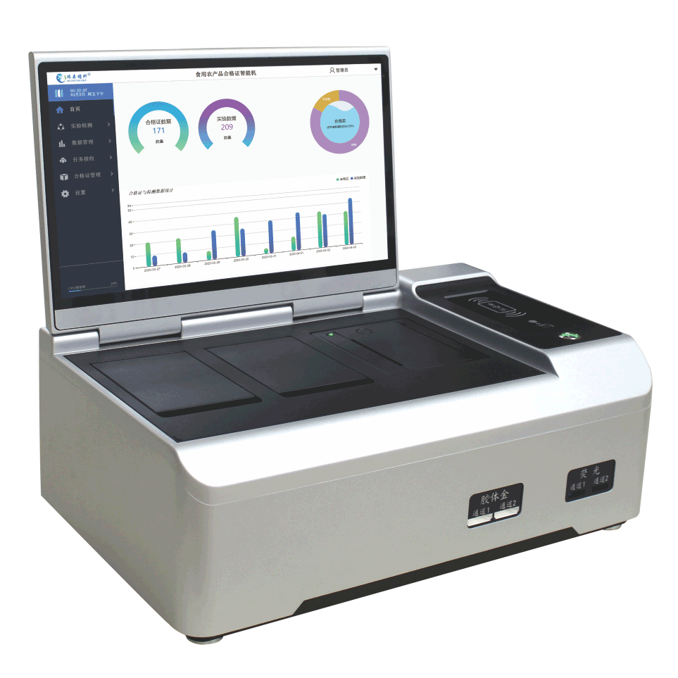 • 翻折式10英寸電容觸摸屏幕 • 支持以太網/WIFI 無線網絡 • 最高支持32通道多波長+4個讀卡槽 • 樣品倉密封防水設計 • 農殘獸殘理化全覆蓋 • 檢測數據自動上傳